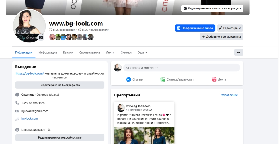 - ФБ канал със 70 хил фена- https://www.facebook.com/online.magazin.bglook/