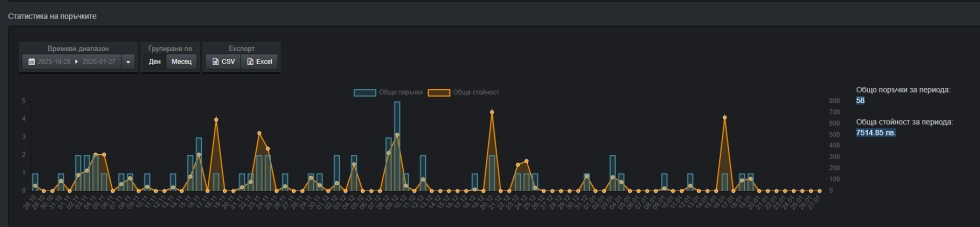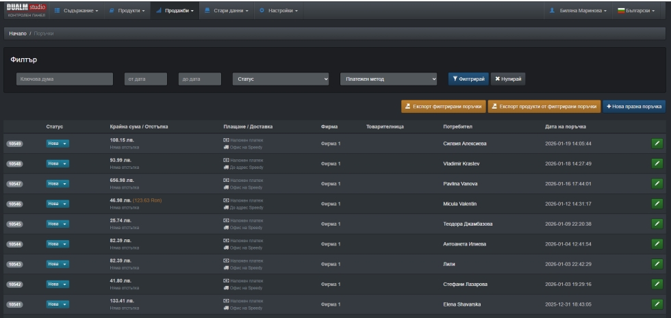- База данни с контакти на реални клиенти / брой поръчки и сегментация/ - около 8 хил към момента