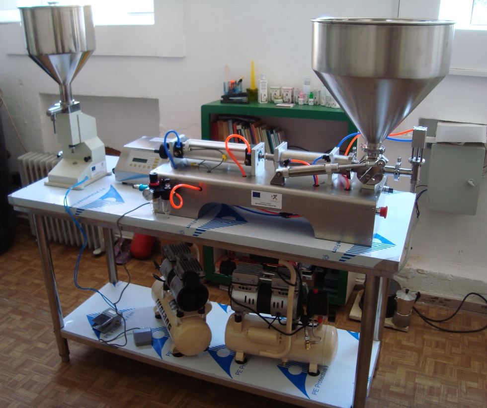 Пневматичен (Полуавтоматичен) дозатор – до 500 мл, Дозатор с диапазон на пълнене: 2-50 мл– двата дозатора могат да работят с емулсии с вискозитет до 10000 сР. Електронен дозатор за течни продукти с нисък вискозитет 1-3 сР.
