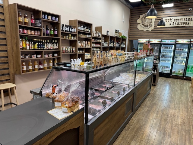 Включено оборудване: Цялостно оборудване за магазин за хранителни стоки: хладилни витрини/ хоризонтални, вертикални/, фризери, TORGO, работни маси и шкафове, мивки, каса и касов апарат, обслужващ софтуер, професионална колбасорезачка, професионална месомелачка, декор, Включена стока: Налична стока