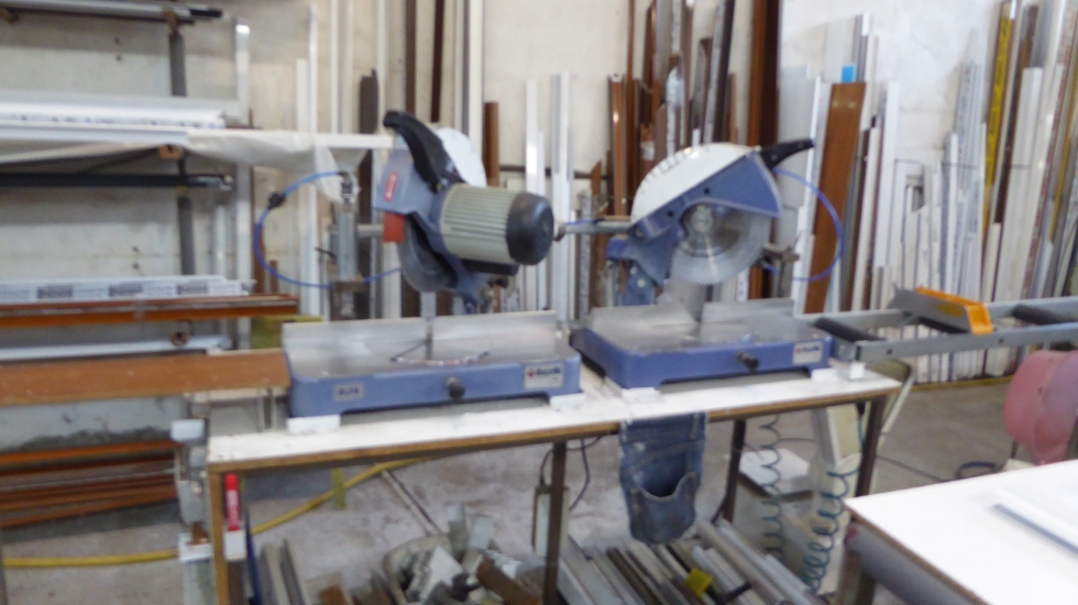 Циркуляри: 2 бр. „АЛФА“, монтирани на работни плотове с линиали.