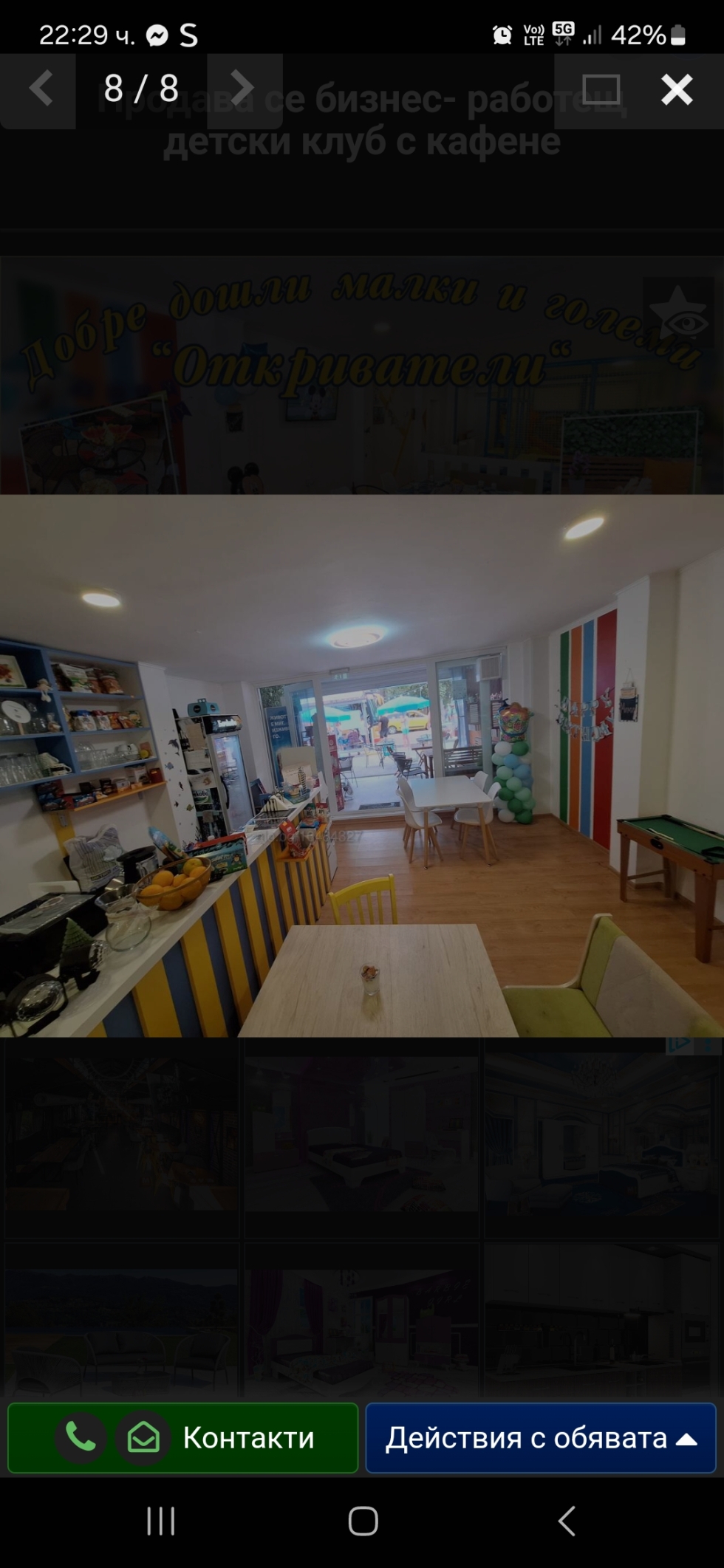 Предлагаме напълно целогодишно функциониращ и оборудван детски клуб-кафе с площ от 77кв.м.Продава се бизнесът, плаща се наем на 2 вноски.