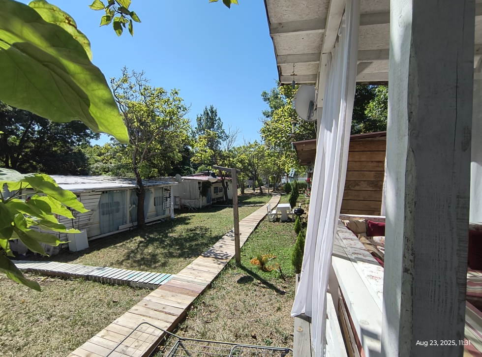Караваната се намира в старата част на къмпинга, на чудесна локация, на едновременно комуникативно и тихо и спокойно място, на метри от ресторант и магазин, с много пространство и зеленина отпред и отстояние от съседни обекти отзад.