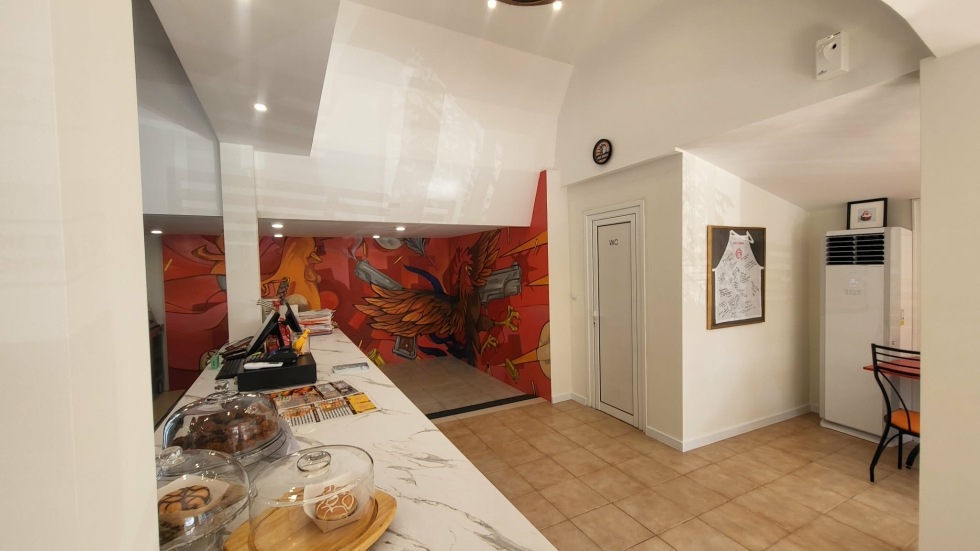 Напълно оборудван обект за ресторант за бързо хранене с тераса.