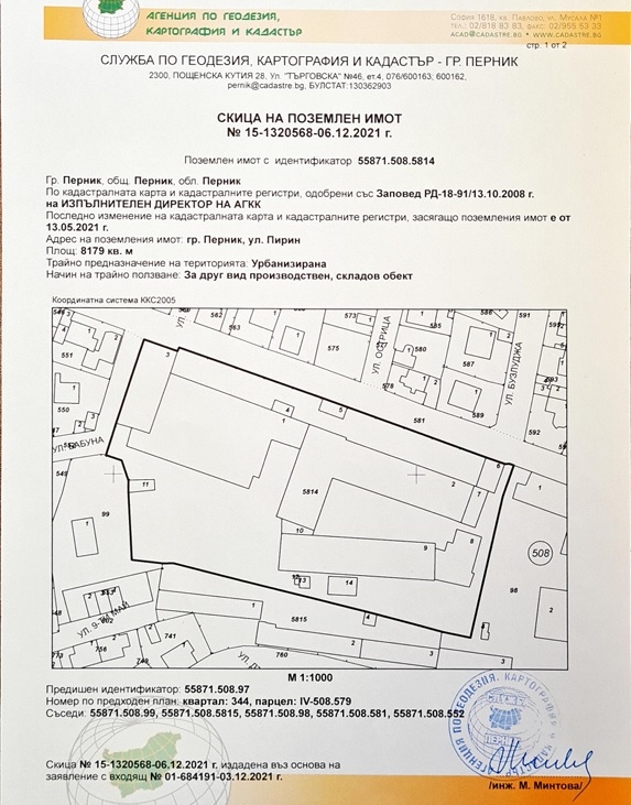 Локация: Имотът се намира в България, гр. Перник, на ул. 'Пирин' 12а, в централната част на града. Разположен е в индустриална зона, само на 300 метра от автобусна спирка и ЖП гара, и в непосредствена близост до международен път Е871 стратегическа връзка за логистика и транспорт.