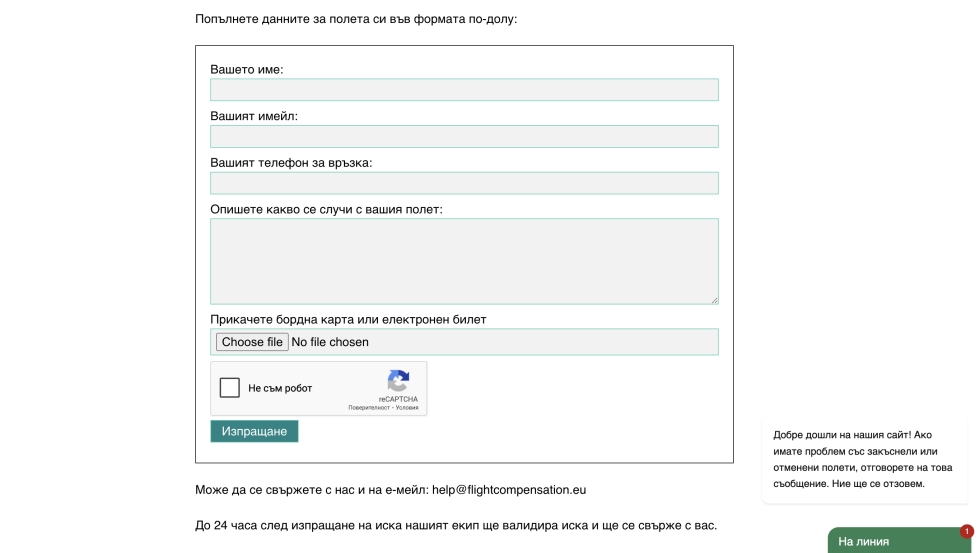 Уебсайта е функционален, да приема заявки за обезщетения за закъснели полети, към него има и оптимизиран блог, водещ трафик от Гугъл.