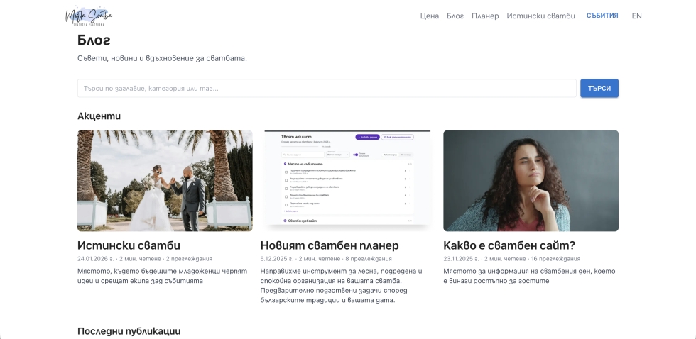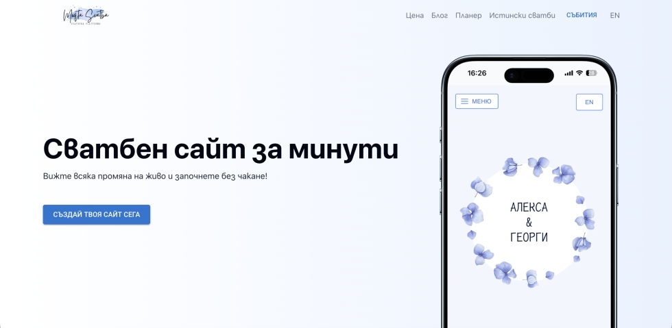 Продава се развита онлайн платформа за създаване на сватбени уебсайтове – „Моята сватба“ ЕООД (https://www.moqtasvatba.bg/), насочена към българския пазар с потенциал за международно разширяване.