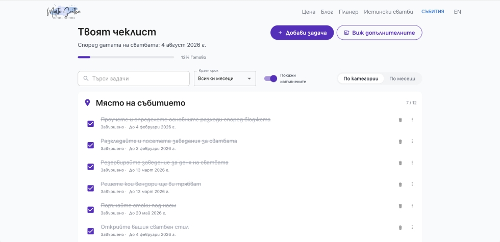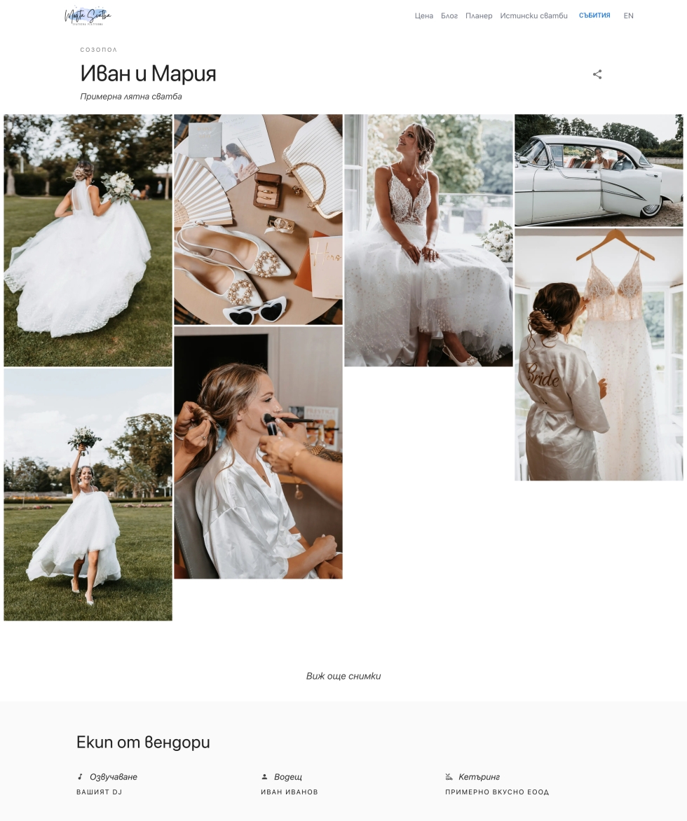 - Истински сватби с лист от включени веднори
