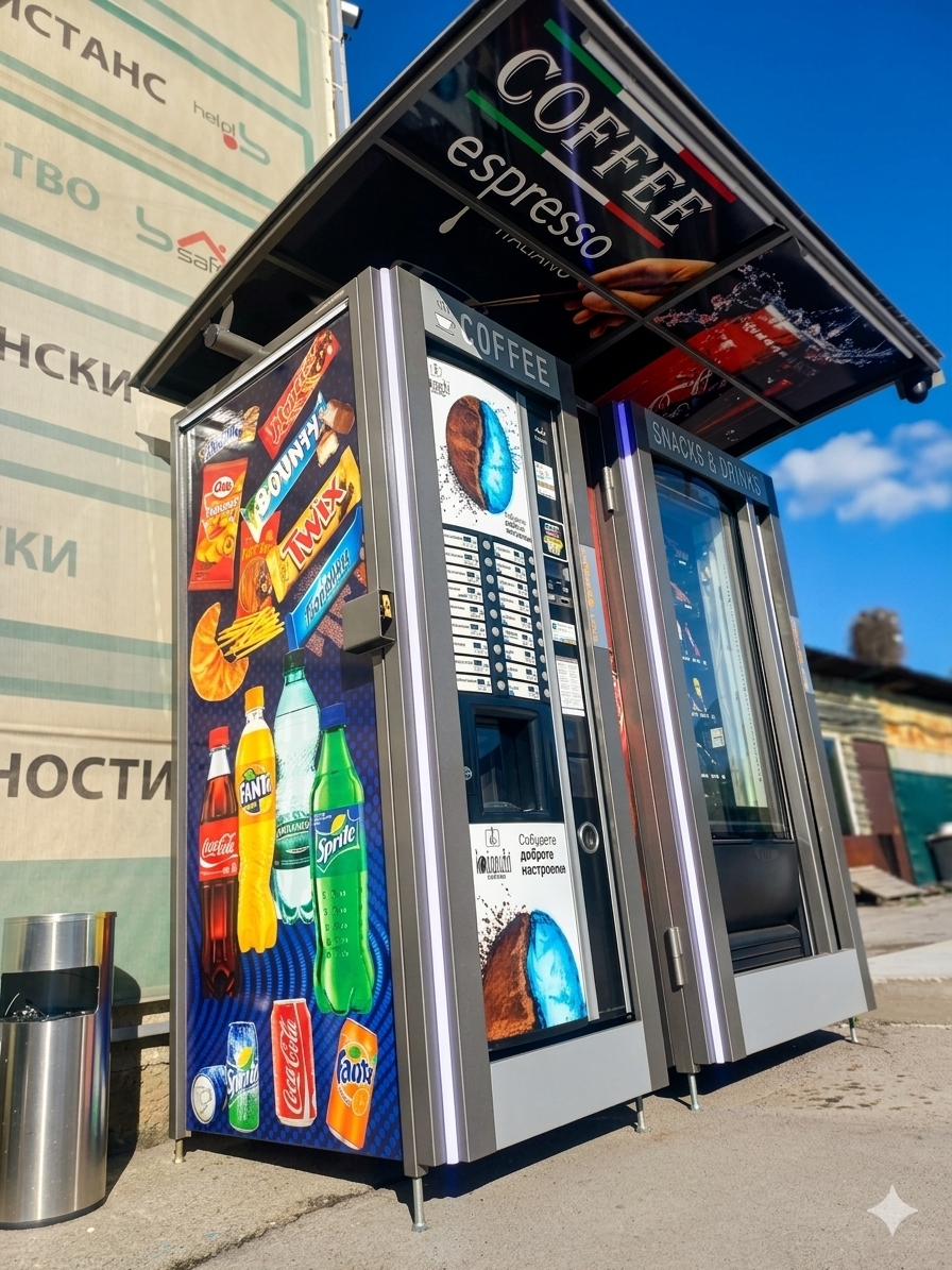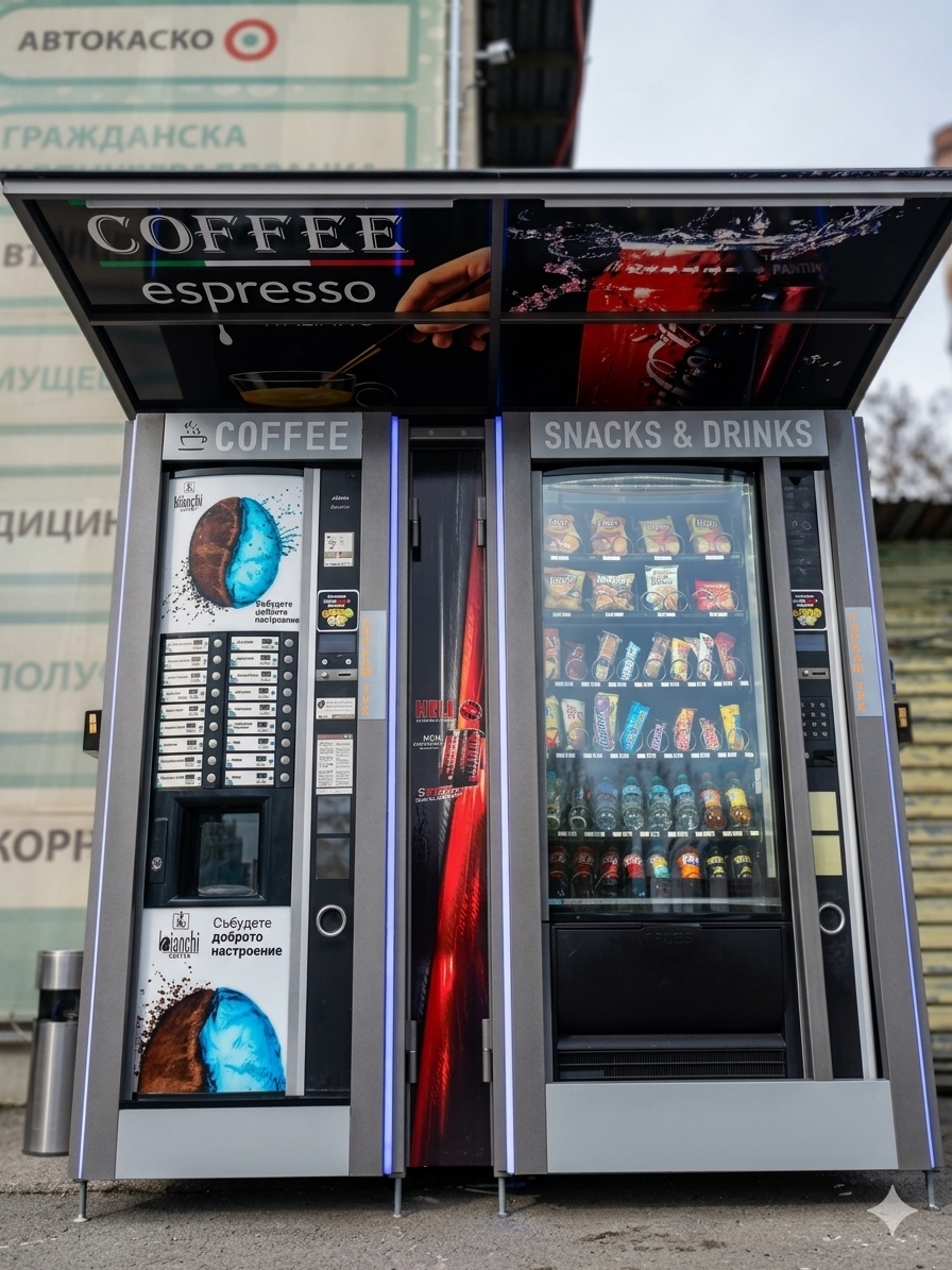 ✅Продавам 2 броя вендинг автомата (кафе и пакетирани храни/напитки), напълно подготвени за работа при всякакви климатични условия. Инвестиция, която работи за Вас от първия ден!