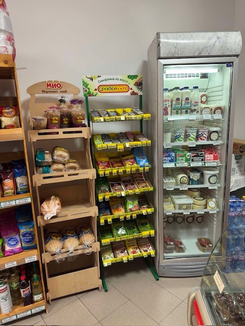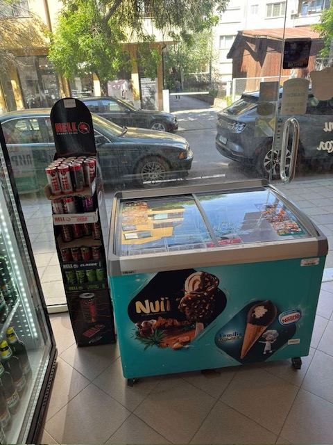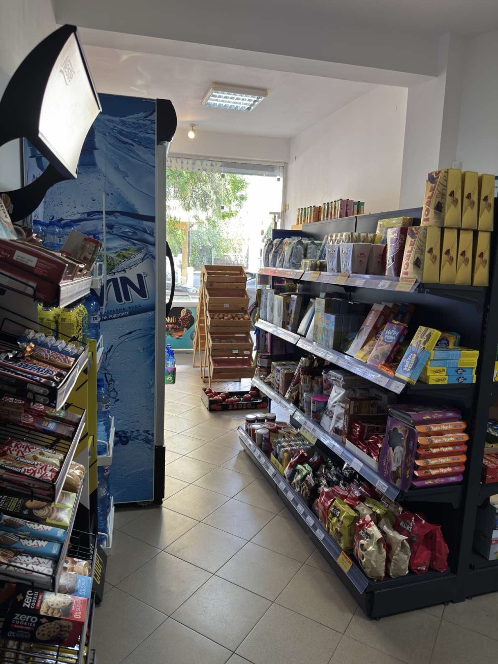 собствено оборудване - 3 вертикални витрини и една хоризонтална общо за 3000 евро. Магазинът има лиценз за цигари. Статутът на помещението е за кафе сладкарница, което дава възможност освен за хранителен магазин да се ползва и за приготвяне на сандвичи и др.
