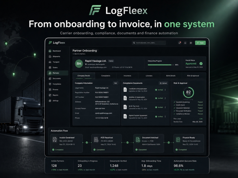 Предлага се възможност за придобиване, стратегическо партньорство или лицензиране на LogFleex.com – AI-базирана SaaS платформа, разработена за транспортни, спедиторски и логистични компании.